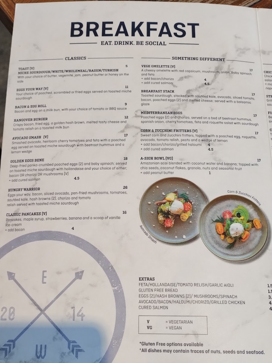 Overall, the menu accommodates casual dining with a focus on breakfast and coffee, supporting a range of tastes from light and healthy to more substantial meals. The layout serves those visiting for a quick order or a relaxed meal.